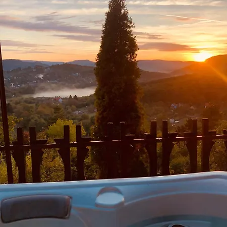 Willa w Kismarosie wyposażona w sofę i biurko do pracy oraz widok na ogród. W łazience znajdują się oddzielna toaleta, gorąca kąpiel i prysznic, suszarka do włosów i ręczniki.